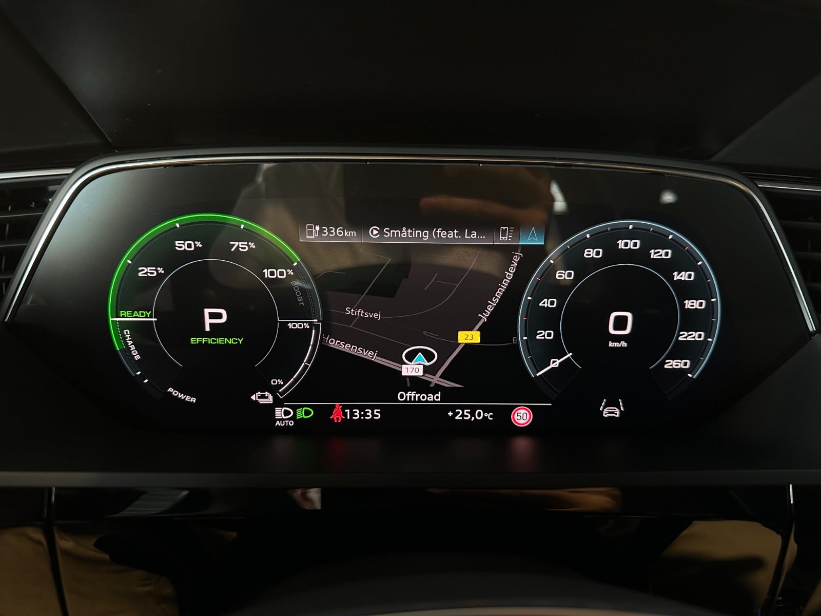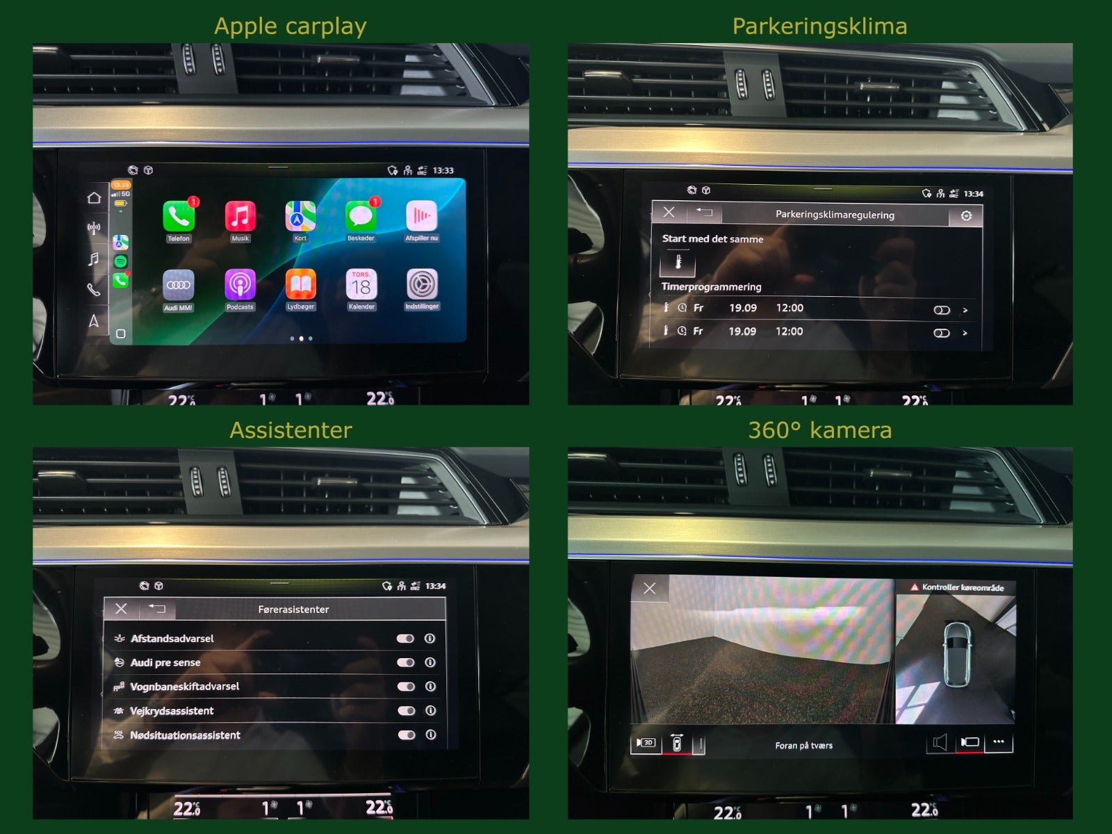 B&O sound system, Kørecomputer, Digitalt cockpit, Bagagerumsdækken, Akustikglas i for & bag, Multifunktionsrat, Læderrat, Læderindtræk, El indst. forsæder m. memory, El-justerbar lændestøtte, El komfortsæder, Splitbagsæde, Ambiente belysning, 20″ alufælge, Panorama glastag m. skyde/vippe funktion, El-klapbare sidespejle m/varme, Tågelygter, Digital Matrix LED forlygter m. fjernlysassistent, LED baglygter, Dynamisk blinklys i for & bag, Tagræling, Mørktonede ruder i bag, Områdebelysning, Automatgear, Aircondition, Fuldaut. klima, 4 zone klima, Elektrisk kabinevarmer, Fjernb. centrallås, Keyless entry & go, Adaptiv/aktiv fartpilot ACC m. kø assistent, Aut. nedbl. bakspejl, Udv. temp. måler, Sædevarme i for & bag, 4x el-ruder, El betjent bagklap, Fod betjent bagklap, Frunk, Adaptiv/aktiv luftundervogn, Elektrisk parkeringsbremse, Headup display, Type-2 ladekabel, Nødlader, App integration, Navigationssystem high m. DAB, BT, Trådløst Android Auto & Apple CarPlay, USB-C tilslutning, Regnsensor, 360° kamera m. parkeringssensorer for & bag, Dæktryksmåler, Træthedsregistrering, Skiltegenkendelse, Isofix, Lygtevasker, Automatisk lys, Airbag, Antispin, ESP, Vognbaneassistent, Blindvinkelsassistent, Automatisk nødbremsesystem, Auto hold, Automatisk nødassistent.