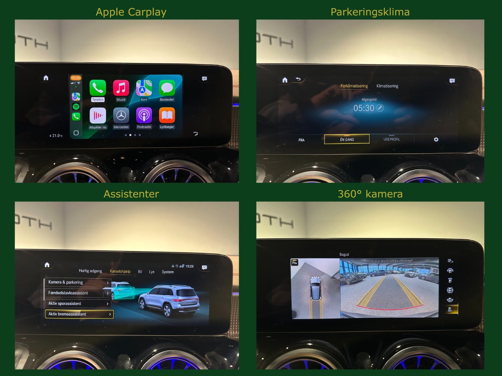 Natpakke, Kørecomputer, Digitalt cockpit, Multifunktionsrat, Læderrat, Delkunstlæderindtræk, Sportssæder, Højdejust. forsæder, El-justerbar lændestøtte, Splitbagsæde, Mørk loftbeklædning, Ambiente belysning, 19″ alufælge, Panorama glastag m. skyde/vippe funktion, El-klapbare sidespejle m/varme, Mercedes LED high performance forlygter m. fjernlysassistent, Led baglygter, Tagræling, Mørktonede ruder i bag, Automatgear, Aircondition, Fuldaut. klima, Elektrisk kabinevarmer, Fjernb. centrallås, Nøglefri tænding, Adaptiv/aktiv fartpilot ACC Distronic plus, Aut. nedbl. bakspejl, Udv. temp. måler, Sædevarme, 4x el-ruder, El betjent bagklap, Elektrisk parkeringsbremse, Type-2 ladekabel, App integration, MBUX navigation plus m. DAB, BT, Android Auto & Apple CarPlay, Parkeringspakke high, Usb-c tilslutning, Regnsensor, Semi-automatisk parkeringssystem, 360° kamera m. parkeringssensorer for & bag, Dæktryksmåler, Træthedsregistrering, Skiltegenkendelse, Isofix, Automatisk lys, Airbag, Antispin, Esp, Vognbaneassistent, Blindvinkelsassistent, Automatisk nødbremsesystem, Auto hold.