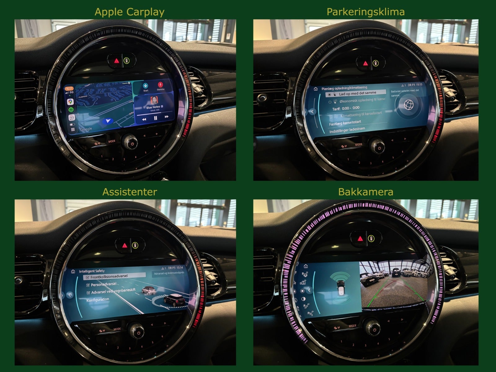 Driving Assistant, Park Assist, Hi-Fi system Harman Kardon, Kørecomputer, Digitalt cockpit, Bagagerumsdækken, Dobbelt bagagerumsbund, Multifunktionsrat, Læderrat, Delkunstlæderindtræk, Sportssæder, Højdejust. forsæder, Splitbagsæde, Ambiente belysning, 16″ alufælge, Panorama glastag m. skyde/vippe funktion, El-klapbare sidespejle m/varme, LED kørelys, Fuld LED forlygter, LED baglygter, Områdebelysning, Automatgear, Aircondition, Fuldaut. klima, 2 zone klima, Elektrisk kabinevarmer, Varmepumpe, Fjernb. centrallås, Keyless entry, Keyless go, Fartpilot, Aut. nedbl. bakspejl, Udv. temp. måler, Sædevarme, El-ruder, Elektrisk parkeringsbremse, Trådløs mobilopladning, Type-2 ladekabel, Nødlader, App integration, DAB radio, Navigation, Musikstreaming via Bluetooth, Apple CarPlay, USB-A tilslutning, USB-C tilslutning, Regnsensor, Semi-automatisk parkeringssystem, Bakkamera m. parkeringssensorer for & bag, Dæktryksmåler, Træthedsregistrering, Skiltegenkendelse, Isofix, Automatisk lys, Fjernlysassistent, Airbag, Antispin, ESP, Vognbaneassistent, Automatisk nødbremsesystem, Forbehold for tastefejl og bildata.