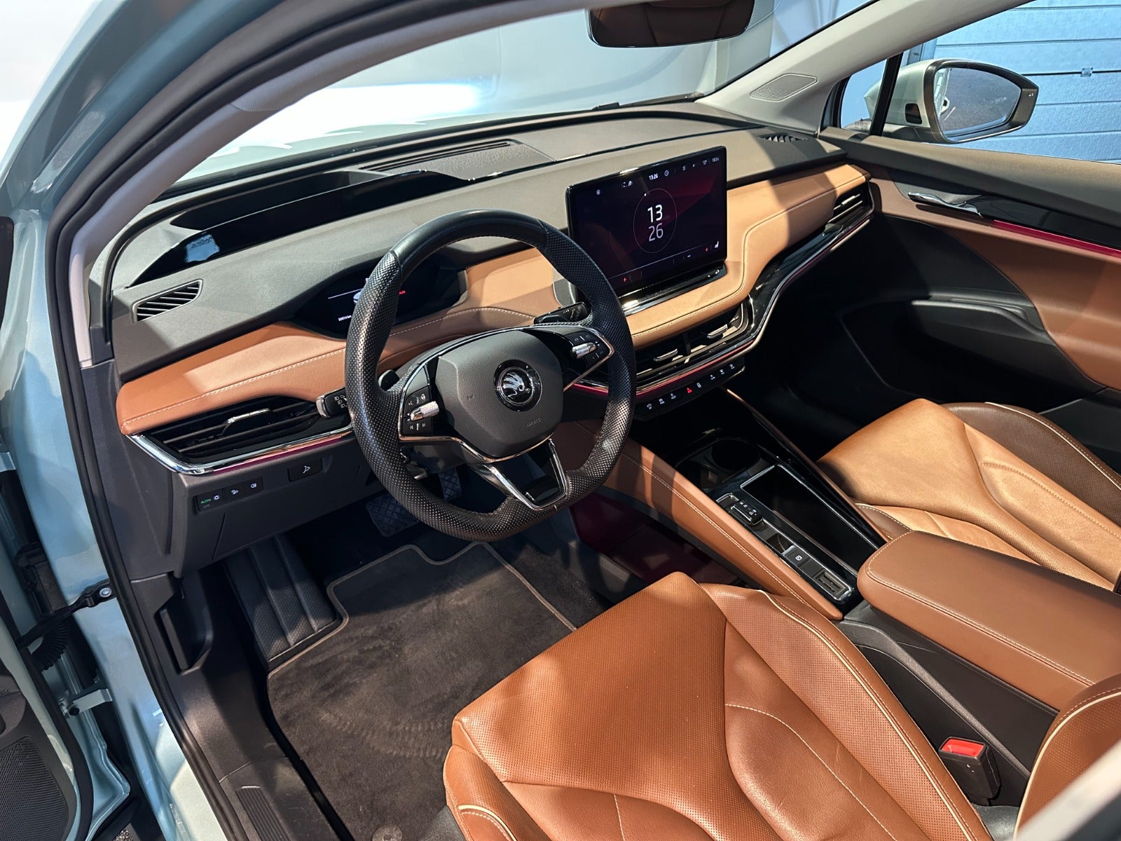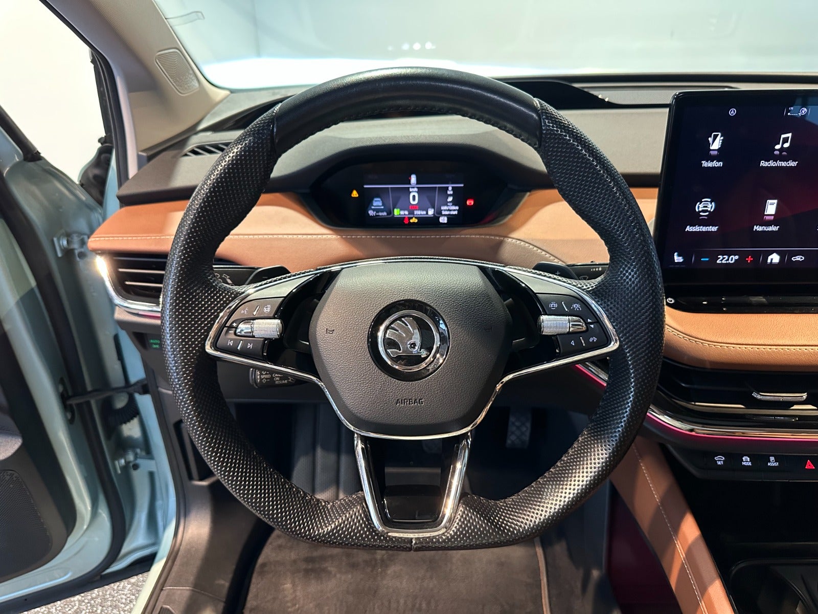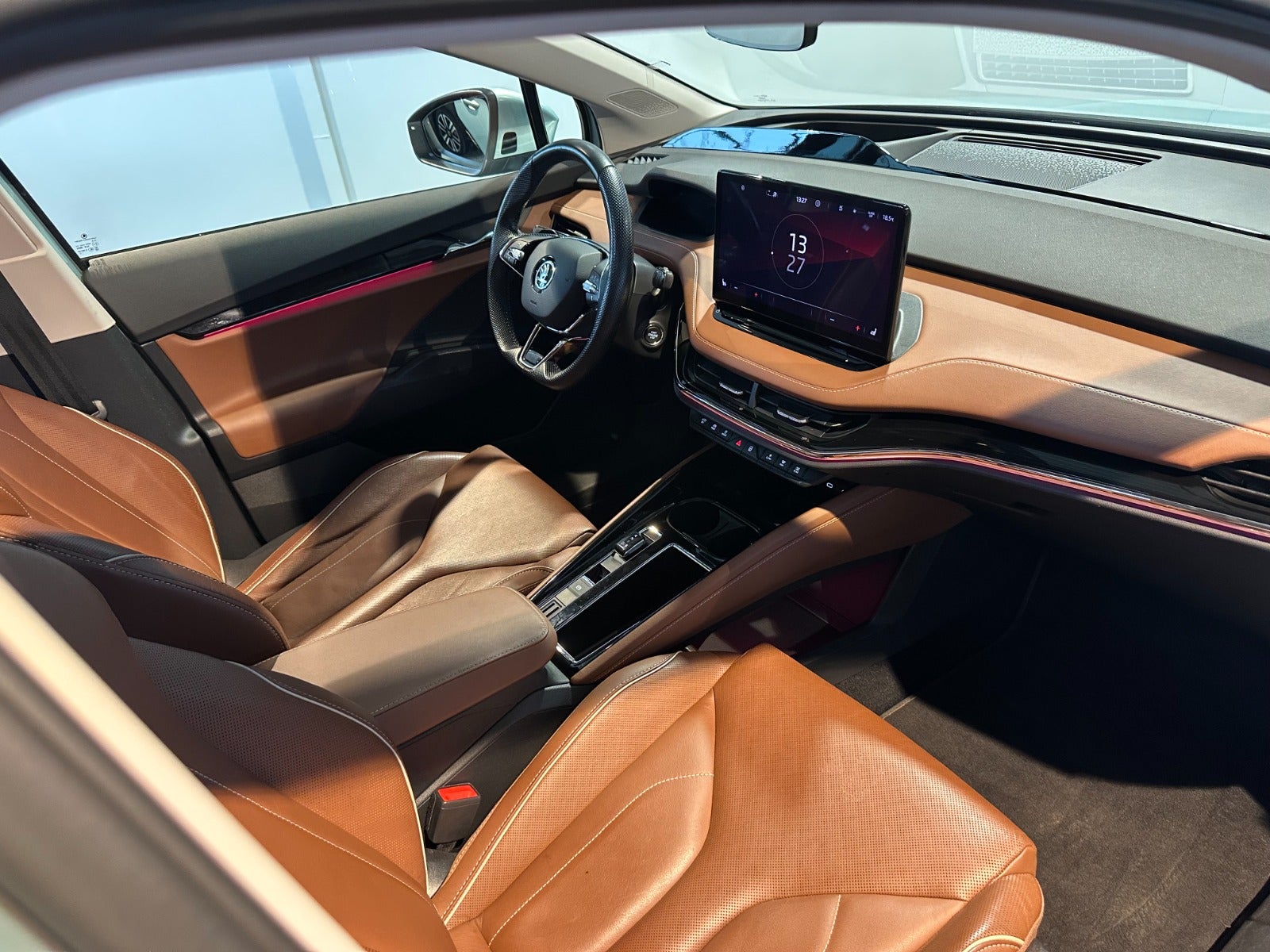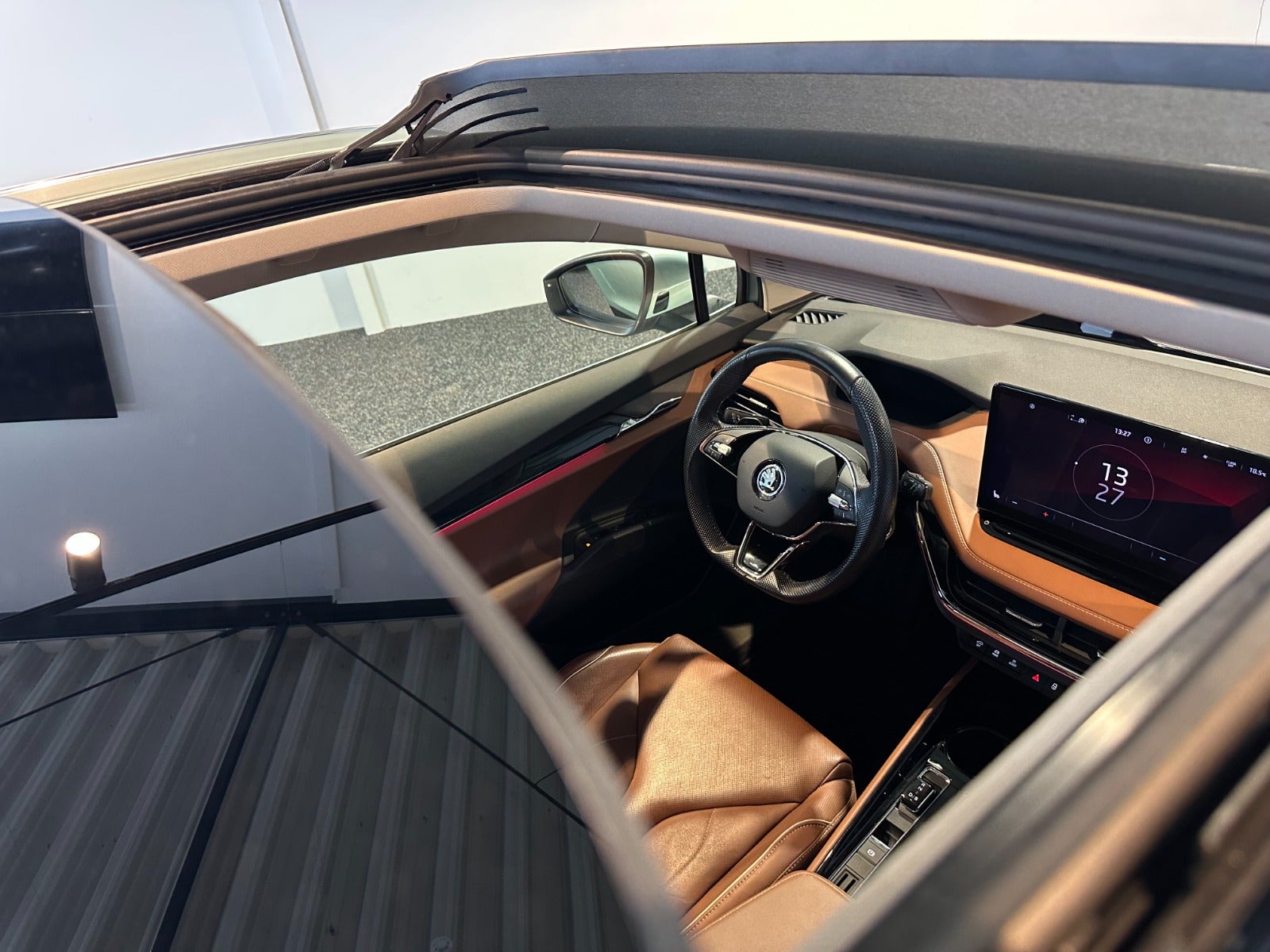 Intelligent Park Assist m. trænet parkering, Front Assist, Elopvarmede sprinklerdyser, Assisted Drive Plus, Kørecomputer, Digitalt cockpit, Bagagerumsdækken, Akustikglas i for, Multifunktionslæderrat, Kunstlæderindtræk, Sportssæder, El indst. forsæder m. memory, El-justerbar lændestøtte, Splitbagsæde, Integrerede rullegardiner, Ambiente belysning, 21″ alufælge, Panorama glastag m. skyde/vippe funktion, El-klapbare sidespejle m/varme, Skoda Crystal Lighting m. fjernlysassistent Matrix Beam, LED baglygter, Dynamisk blinklys i bag, Tagræling, Mørktonede ruder i bag, Automatgear, Varme i rat, Aircondition, 3 zone klima, Elektrisk kabinevarmer, Fjernb. centrallås, Keyless Entry & Go, Adaptiv/aktiv fartpilot ACC m. kø-assistent, Aut. nedbl. bakspejl, Udv. temp. måler, Sædevarme, 4x el-ruder, El betjent bagklap m. virtuel pedal, Adaptiv undervogn, Elektrisk parkeringsbremse, Headup display, Trådløs mobilopladning, Type-2 ladekabel, App integration, Navigation m. DAB, BT, Trådløst Android Auto & Apple CarPlay, USB-C tilslutning, Regnsensor, Automatisk parkeringssystem, 360° kamera m. parkeringssensorer for & bag, Træthedsregistrering, Skiltegenkendelse, Isofix, Lygtevasker, Automatisk lys, Fjernlysassistent, Airbag, Antispin, ESP, Vognbaneassistent, Blindvinkelsassistent, Automatisk nødbremsesystem, Auto Hold.